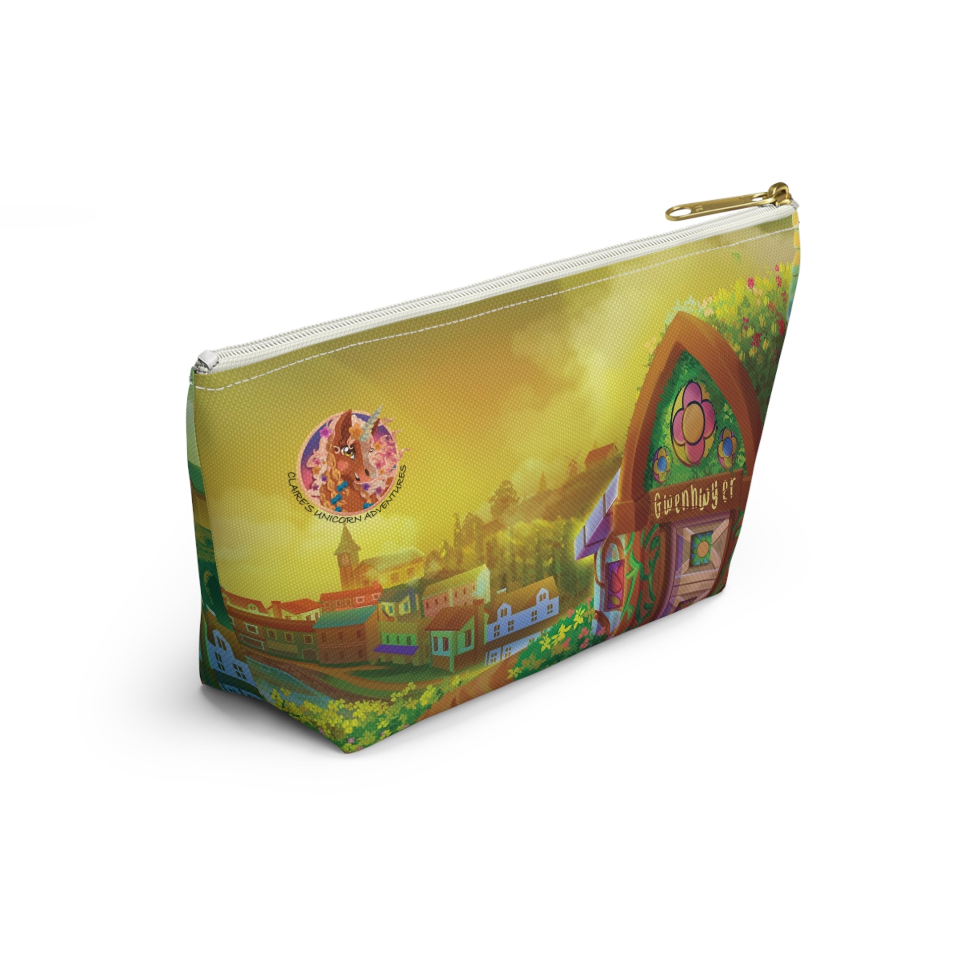 Carry Gwenhwyer’s Eco-Friendly Charm Everywhere You Go! Featuring Gwenhwyer the unicorn and her beautiful, eco-friendly home, this accessory pouch is as practical as it is enchanting. Perfect for organizing your essentials, this versatile pouch can be used as a pencil case, cosmetic bag, or travel organizer, making it a must-have for unicorn lovers of all ages.Made from 100% durable polyester with a non-woven laminate interior, this pouch is built to last while keeping your items safe and secure. The zipper closure ensures everything stays in place, and the T-bottom design provides extra space for your belongings. Available in multiple sizes, it’s perfect for carrying everything from small accessories to larger supplies.Whether you’re heading to school, traveling, or simply organizing your bag, this Gwenhwyer pouch adds a touch of magic and eco-friendly inspiration to your day.Key Features:
