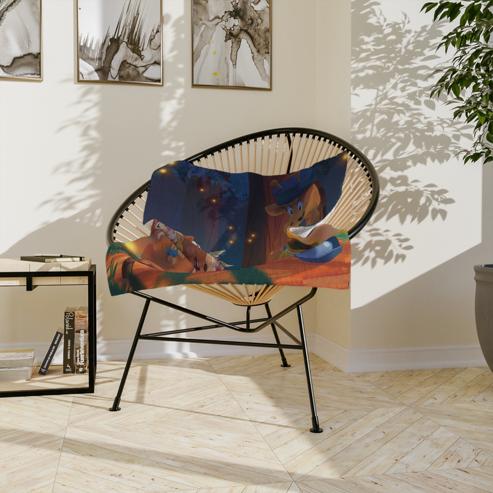 Wrap Yourself in the Magic of Gwenhwyer and Clippity Clop! Featuring Gwenhwyer the unicorn and Clippity Clop the giraffe dancing by the light of fireflies in the woods, this enchanting blanket brings the warmth of friendship and adventure to your home. Inspired by Gwenhwyer’s story of travel and meeting new friends, this blanket is perfect for cozy nights, magical dreams, or simply adding a whimsical touch to your space.Made from 100% super-soft polyester fleece, this blanket is designed for ultimate comfort and durability. The one-sided print showcases the vibrant, storybook-inspired design in picture-perfect quality, while the 2" stitched edge ensures the borders stay intact for years to come. Available in three sizes, this blanket is perfect for everyone—toddlers, grown-ups, and even your four-legged friends!Whether you’re curling up on the couch, adding a decorative touch to your bed, or gifting it to a fellow unicorn lover, this blanket is sure to become a favorite for all ages.Key Features: