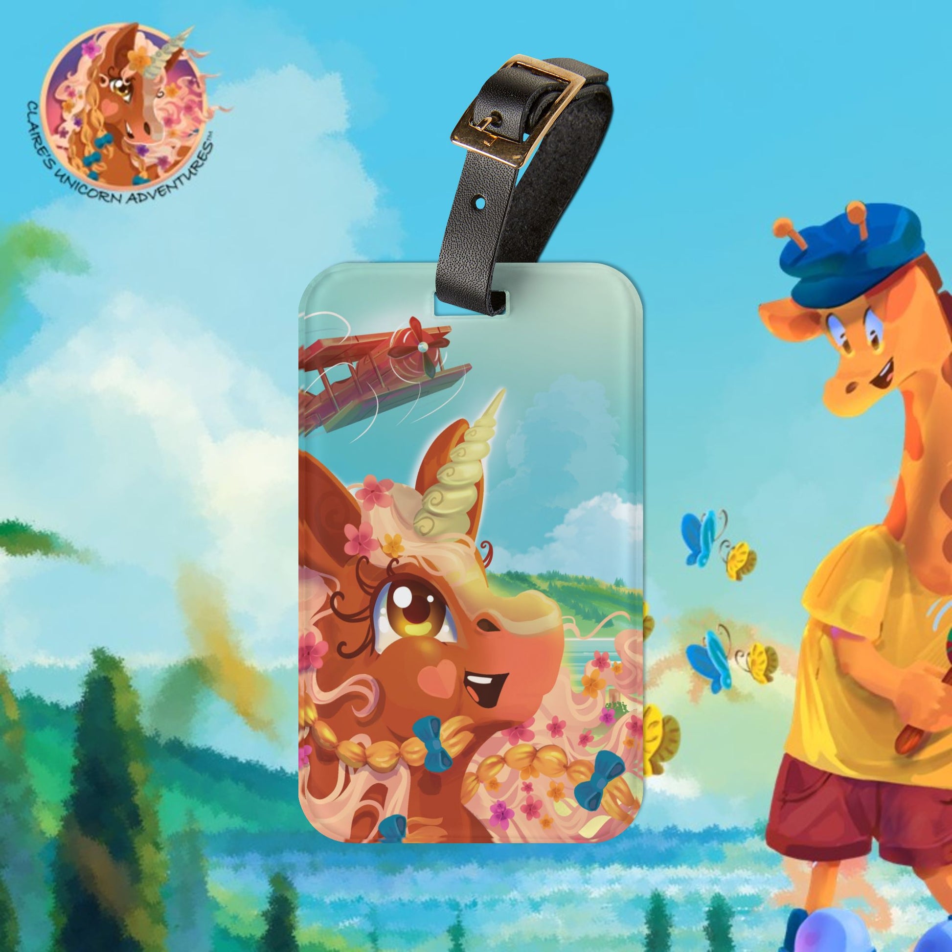 Travel in Style with Gwenhwyer’s Adventure Luggage Tag! Featuring a charming travel image from Gwenhwyer’s delightful book about her adventures, this acrylic luggage tag is the perfect way to add a touch of magic to your travels. Whether you’re heading on a grand journey or a quick getaway, this tag ensures your luggage stands out while keeping your contact information secure.Made from 100% durable acrylic, this lightweight luggage tag won’t add extra weight to your baggage allowance. The glossy printed front showcases Gwenhwyer’s enchanting design, while the rear opening includes a business card insert for your personal information. Each tag comes with an adjustable leather strap, ensuring it stays securely attached to your suitcase, backpack, or travel bag.Perfect for unicorn lovers and fans of Gwenhwyer’s adventures, this luggage tag is both a practical and stylish travel accessory.Key Features:
