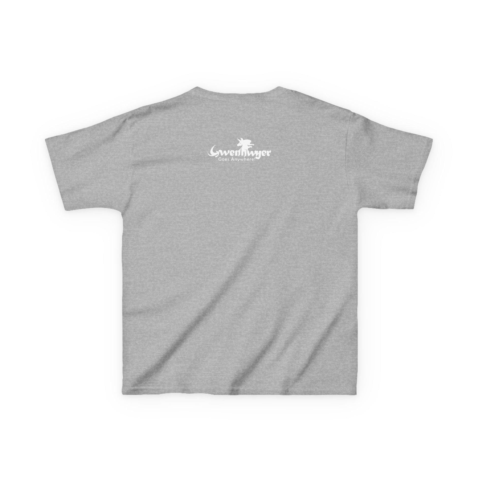 Gwenhwyer Goes Anywhere with This Stylish Youth T-Shirt! Featuring the elegant and adventurous Gwenhwyer the unicorn, this kids' t-shirt is perfect for everyday wear. Whether they’re heading to school, playing outside, or relaxing at home, this tee combines comfort, durability, and a touch of magical charm that kids will love.Made from 100% cotton for solid colors (with polyester blends for heather options), this t-shirt is soft, breathable, and gentle on the skin. The midweight fabric (5.3 oz/yd² or 180 g/m²) makes it a great choice for any season, while the classic fit and crew neckline provide a timeless style that’s perfect for daily use. The twill-taped shoulders add durability, and the ribbed collar resists curling for a polished look. Plus, the pearlized, tear-away label ensures a scratch-free experience for all-day comfort.Ethically made using US-grown cotton, this t-shirt is not only stylish but also eco-conscious, certified by OEKO-TEX for safety and quality. Whether you’re looking for a magical addition to your child’s wardrobe or a thoughtful gift, this Gwenhwyer t-shirt is sure to become a favorite.Key Features: