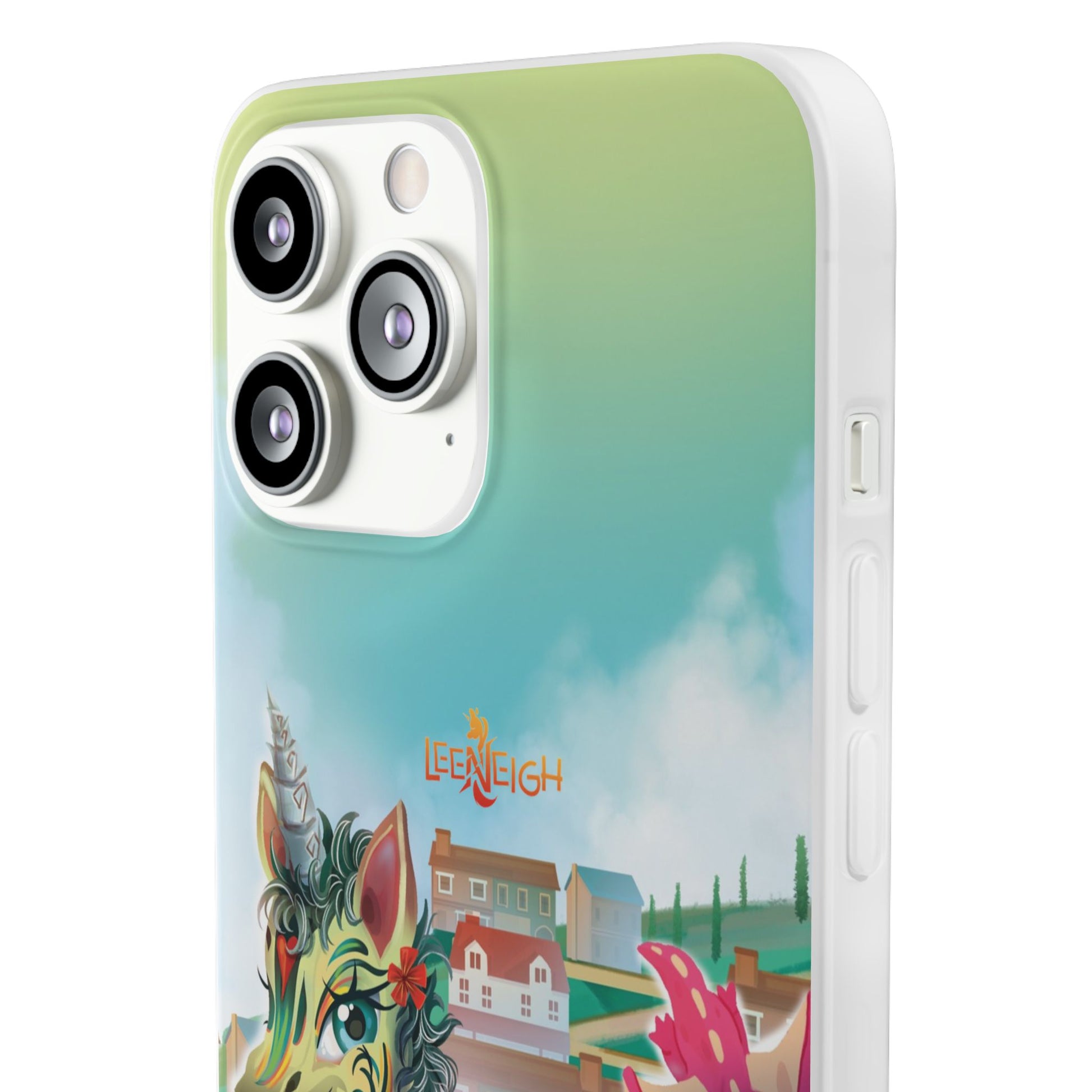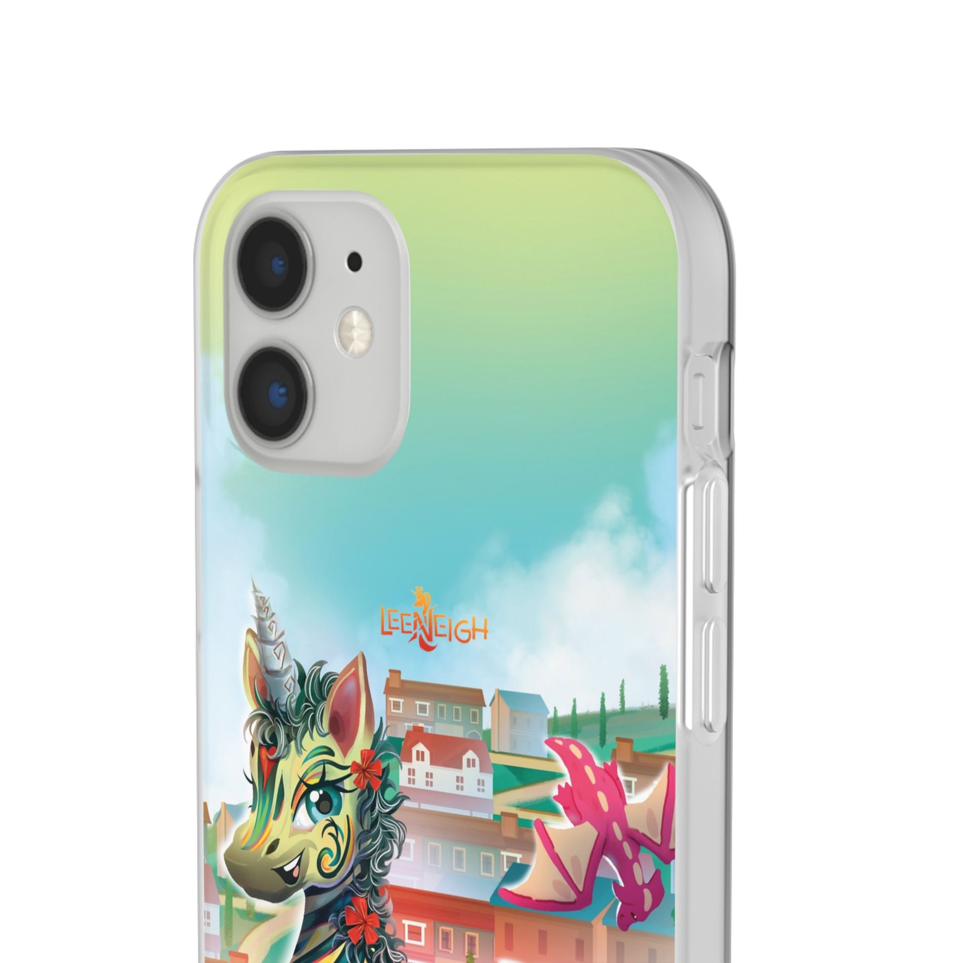 Fly into Adventure with LeeNeigh and Her Dragon Friends! Featuring LeeNeigh the unicorn alongside her majestic dragon companions, this Flexi Phone Case is the perfect blend of magical design and modern functionality. Whether you’re a fan of LeeNeigh’s adventures or simply love whimsical designs, this case adds a touch of fantasy to your everyday essentials while keeping your phone safe.Made from premium-quality clear TPU (Thermoplastic Polyurethane), this case is lightweight, flexible, and resistant to wear and tear. The slimline, low-profile design fits tightly around your phone without adding bulk, while the semi-transparent matte finish enhances the vibrant artwork of LeeNeigh and her dragon friends. With precise cutouts for seamless connectivity and support for wireless charging, this case is as practical as it is beautiful.Whether you’re protecting your phone or gifting it to a fellow unicorn lover, this LeeNeigh phone case is the perfect way to showcase your love for magical adventures.Key Features: