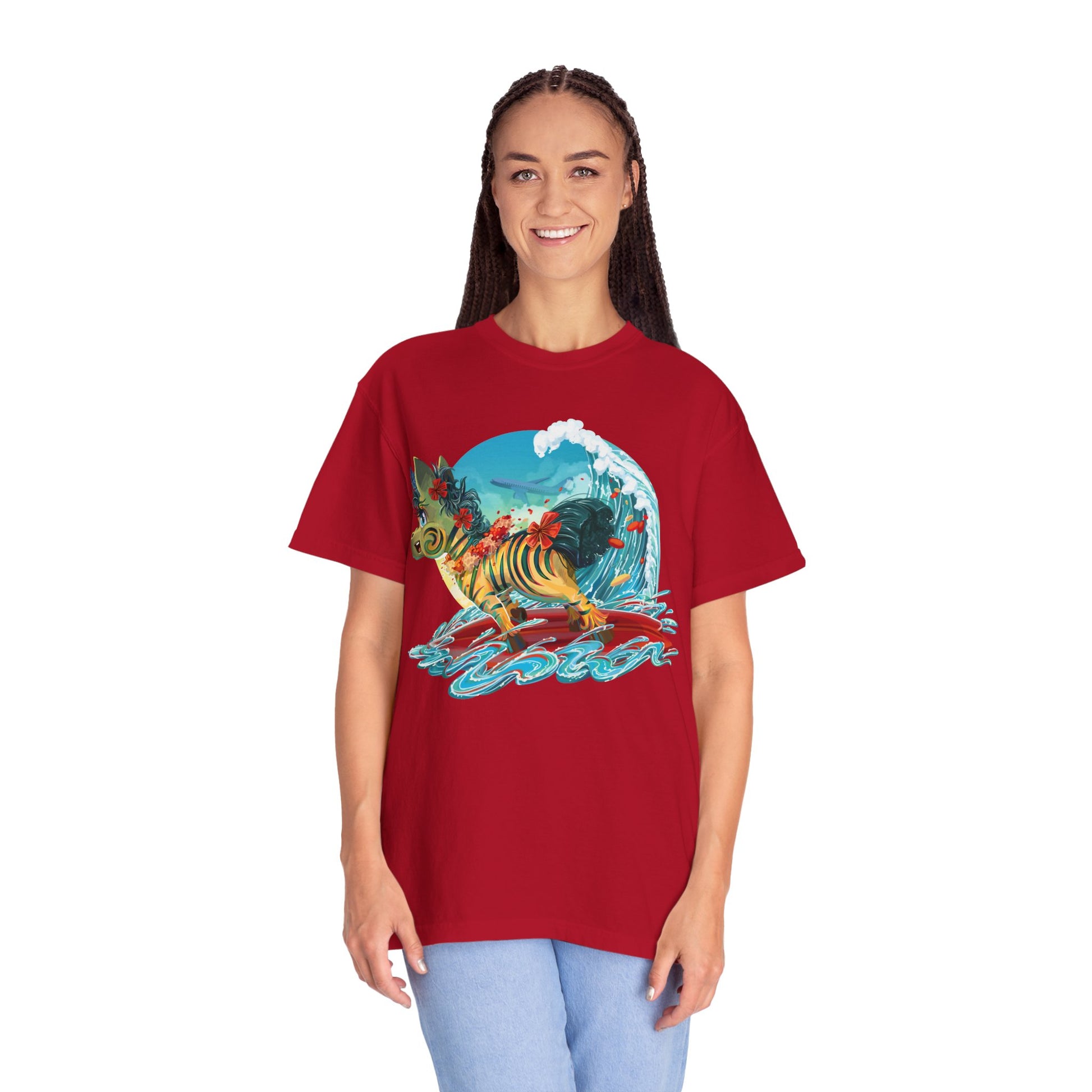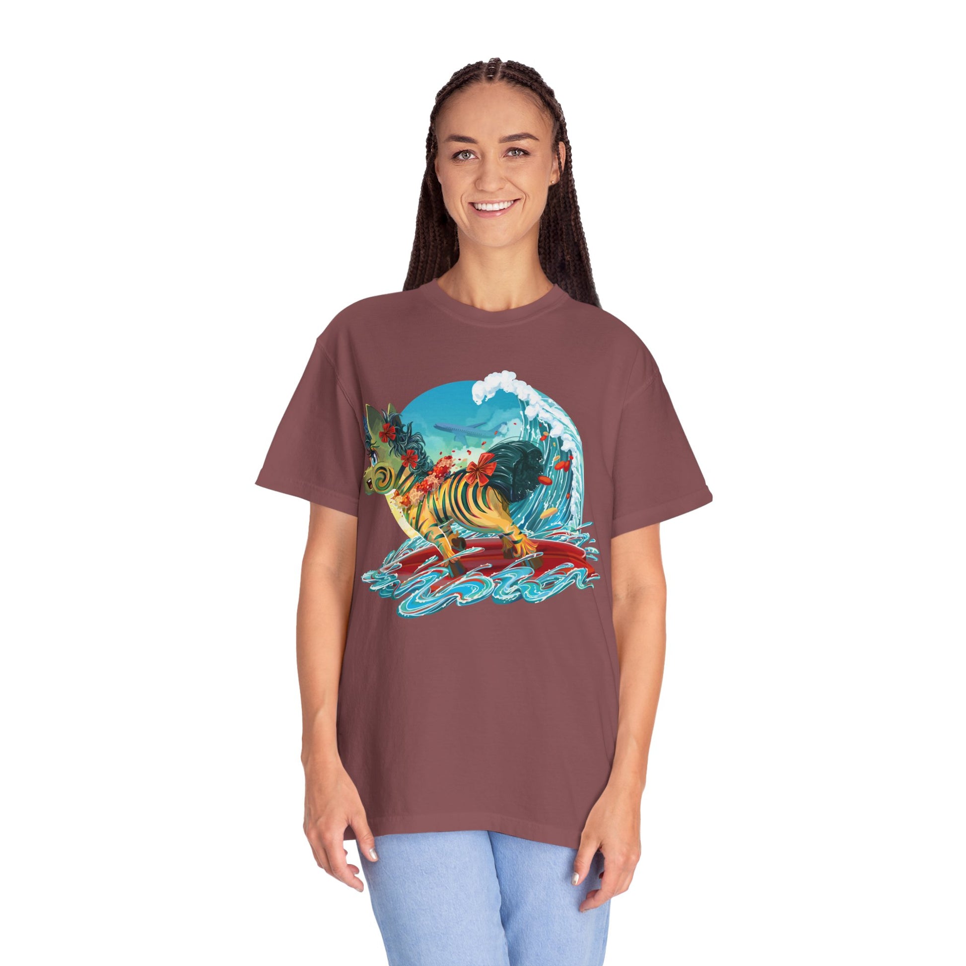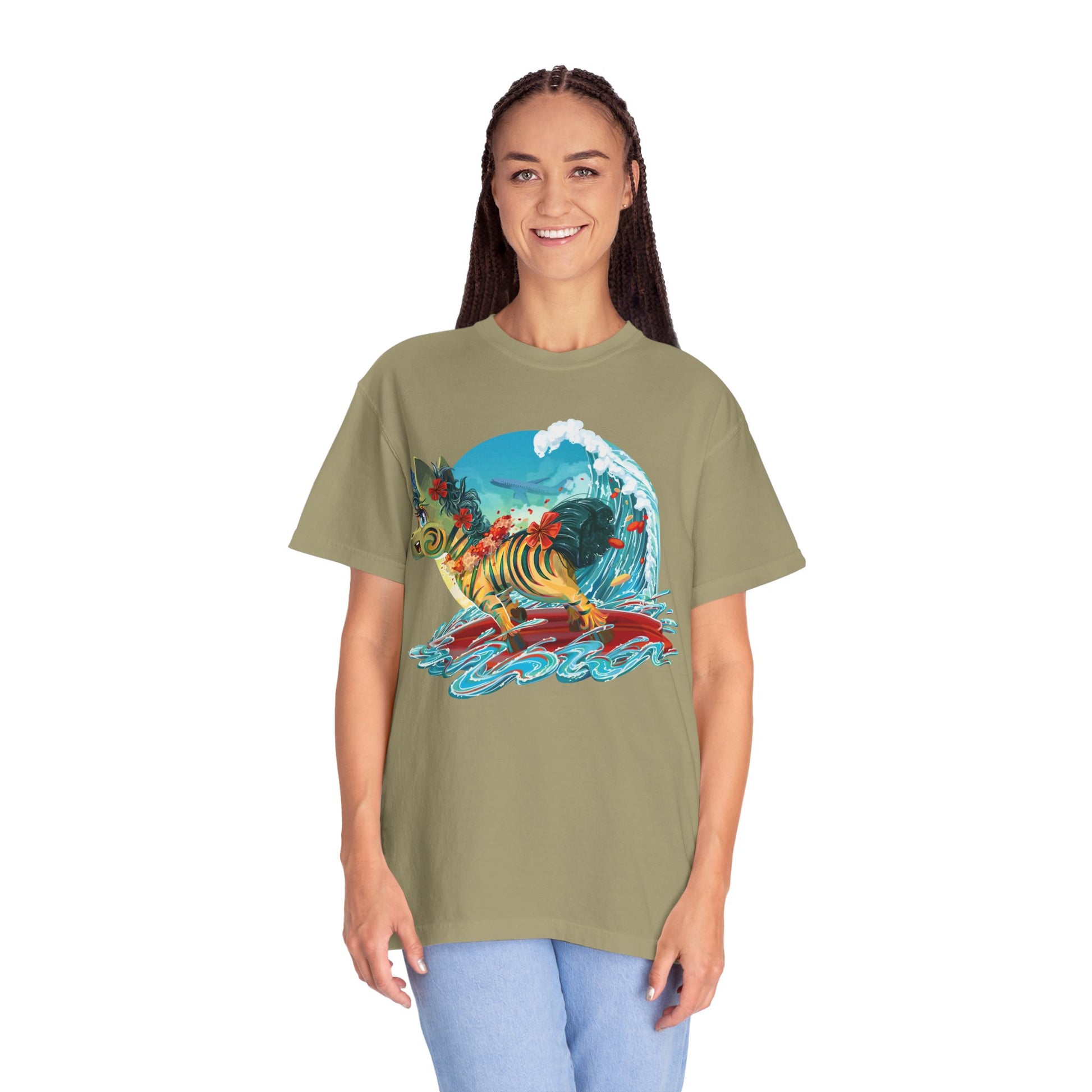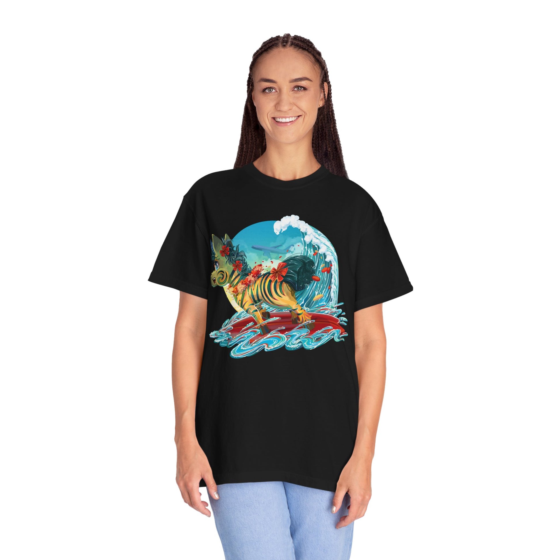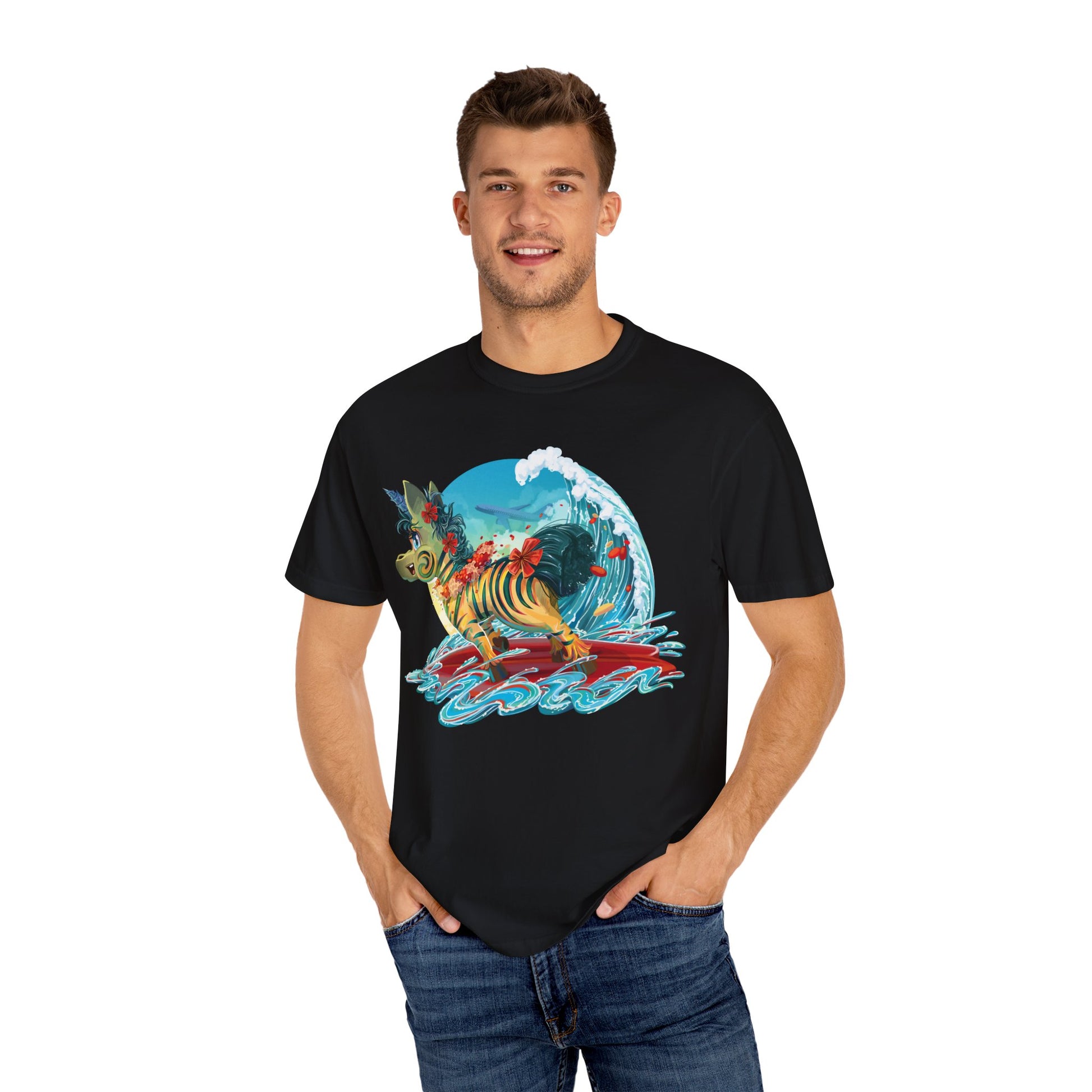 Ride the Waves with LeeNeigh the Surfing Unicorn! Featuring LeeNeigh riding her surfboard, this unisex garment-dyed t-shirt brings a splash of fun and magic to your wardrobe. Perfect for beach outings, casual meetups, or laid-back days, this shirt radiates carefree summer vibes while keeping you stylish and comfortable. Whether you’re a fan of LeeNeigh’s adventures or just love unique designs, this tee is a must-have for anyone who embraces a relaxed lifestyle.Crafted from 100% ring-spun US cotton, this t-shirt features soft, garment-dyed fabric that delivers a rich texture and a vintage-inspired look. The relaxed fit ensures all-day comfort, while the double-needle stitching enhances durability for long-lasting wear. Designed with a seamless tubular knit, this shirt offers a smooth finish and reduces fabric waste, making it a sustainable and stylish choice. Available in sizes S to 4XL, it’s perfect for both men and women who appreciate quality and individuality.Whether you’re gifting it for a birthday, summer celebration, or just because, this LeeNeigh t-shirt is the perfect way to bring a little magic and adventure to your wardrobe.Key Features: