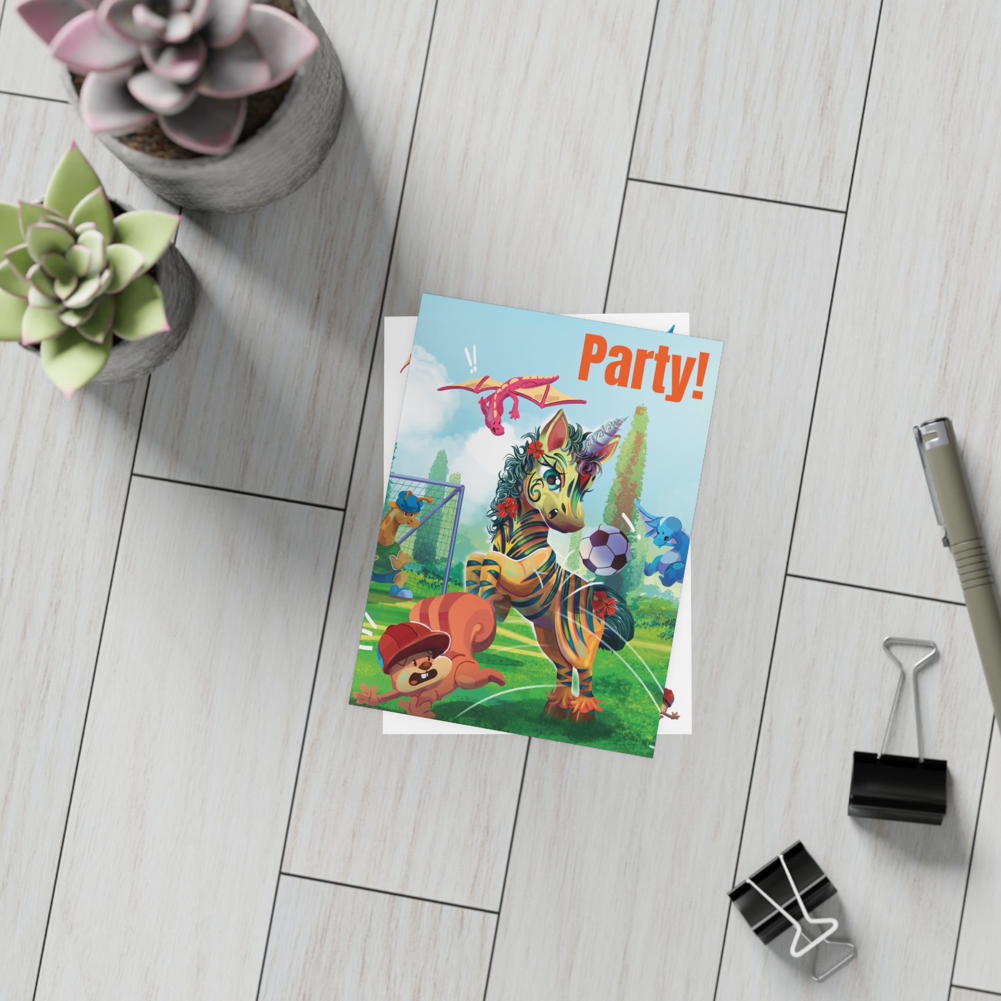 Kick Off the Fun with LeeNeigh Soccer-Themed Party Invitations! Featuring LeeNeigh the unicorn in an exciting soccer-themed design, these party invitation postcards are the perfect way to set the tone for a magical and sporty celebration. Whether it’s a birthday party, team gathering, or any special event, these invitations will get your guests excited to join the fun.Available in four sizes and with four paper finish options, these customizable invitations allow you to add all your event details for a truly unique touch. The high-quality design ensures that LeeNeigh’s vibrant soccer scene stands out, making your invitations as memorable as the event itself.Perfect for unicorn and soccer fans, these invitations are a fun and creative way to bring everyone together for a celebration filled with magic and teamwork.Key Features: