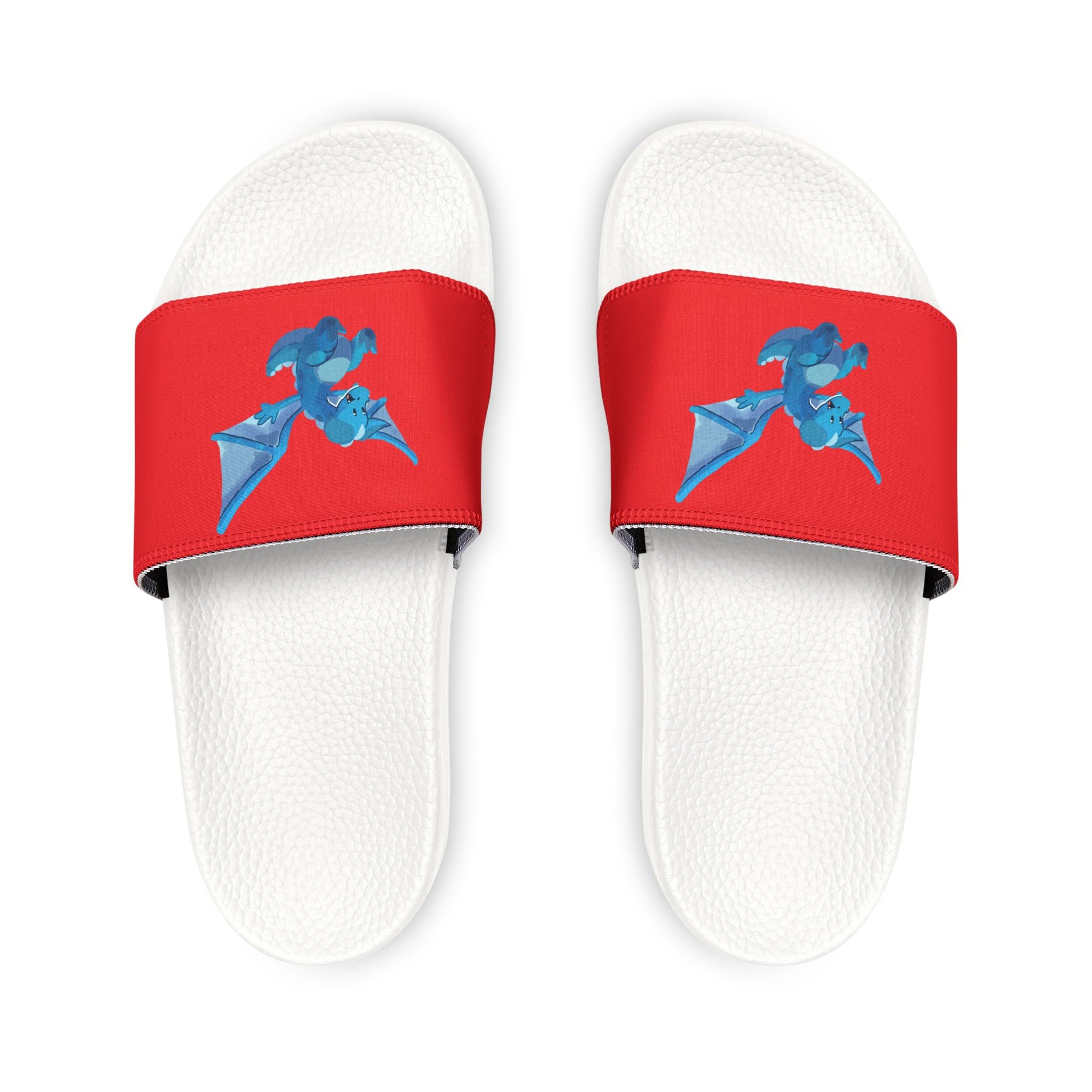 Step into Adventure with the Blue Dragon Sandals! Featuring the blue dragon from LeeNeigh's story adventure, these kids' slide sandals are perfect for summer fun. Whether it’s a day at the park, a beach outing, or backyard playtime, these sandals combine style, comfort, and durability to keep up with every adventure.Crafted with 100% polyurethane outsoles and neoprene and polyester straps, these sandals are designed for all-day wear without discomfort. The ergonomic sole ensures a snug, supportive fit, while the soft straps prevent chafing, making them ideal for active kids. The edge-to-edge printed strap showcases the blue dragon’s bold design, and it’s made to last—no peeling, cracking, or fading, even after countless adventures.Available in black or white outsole options, these sandals are as versatile as they are fun. Let your little ones take on the summer heat in style with their favorite dragon companion!Key Features: